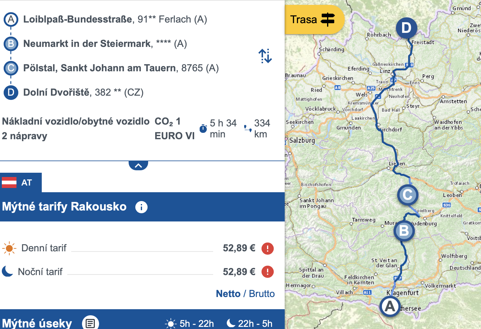 Trasu přes Loibl Pass, Klagenfurt, po silnici 317 do Pöls a potom po 117 až do Triebenu, kde se napojíme na Pyhrnskou dálnici, jedeme už po několikáté. Jednak je to hezká cesta, je i jedna z nejkratších a dostat se tu do zácpy by byla velká náhoda. A má to ještě jednu výhodu, pro nás, kteří musíme platit v Rakousku mýto, je to za poloviční cenu než trasy přes Graz, nebo Salzburk...